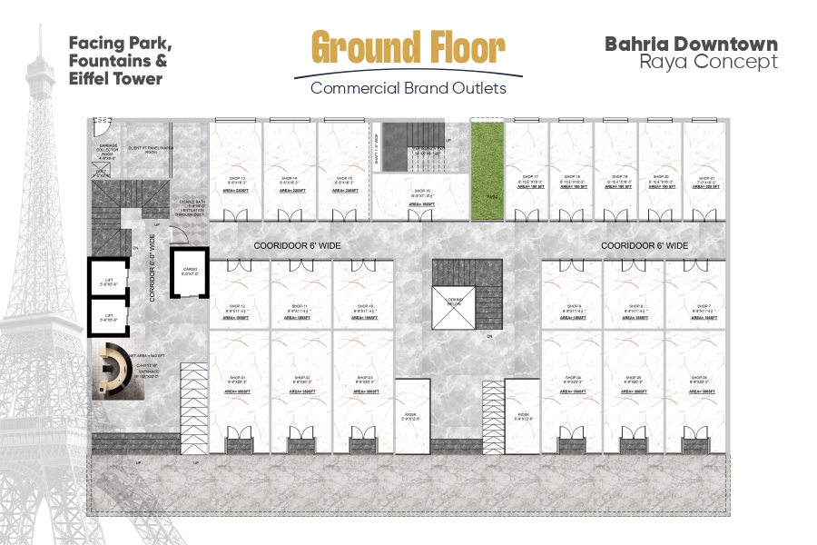 Ideally located adjacent to the iconic Eiffel Tower replica, Grand 15 enjoys one of the most prominent and high-visibility commercial addresses in Bahria Town. This strategic positioning ensures strong footfall for businesses while offering residents a vibrant, upscale lifestyle in a well-connected community.