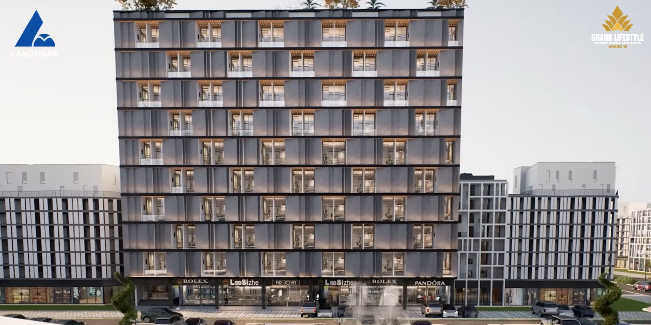 The Grand Lifestyle Grand 15 is an impressive project featuring a ground level plus six additional stories, showcasing a well-designed blend of commercial and residential spaces.